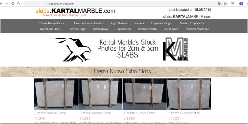 15.05.2019 Yeni web sitemiz artık kullanılabilir durumda: slabs.kartalmarble.com Üretimimizin son plaka fotoğraflarını bulabilirsiniz.