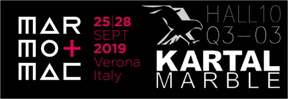 06.08.2019 Marmomac Verona İtalya'da 25-28 Eylül 2019 tarihlerinde sizi görmekten mutluluk duyarız. Kartal Mermer - Salon 10 Stand Q3-03